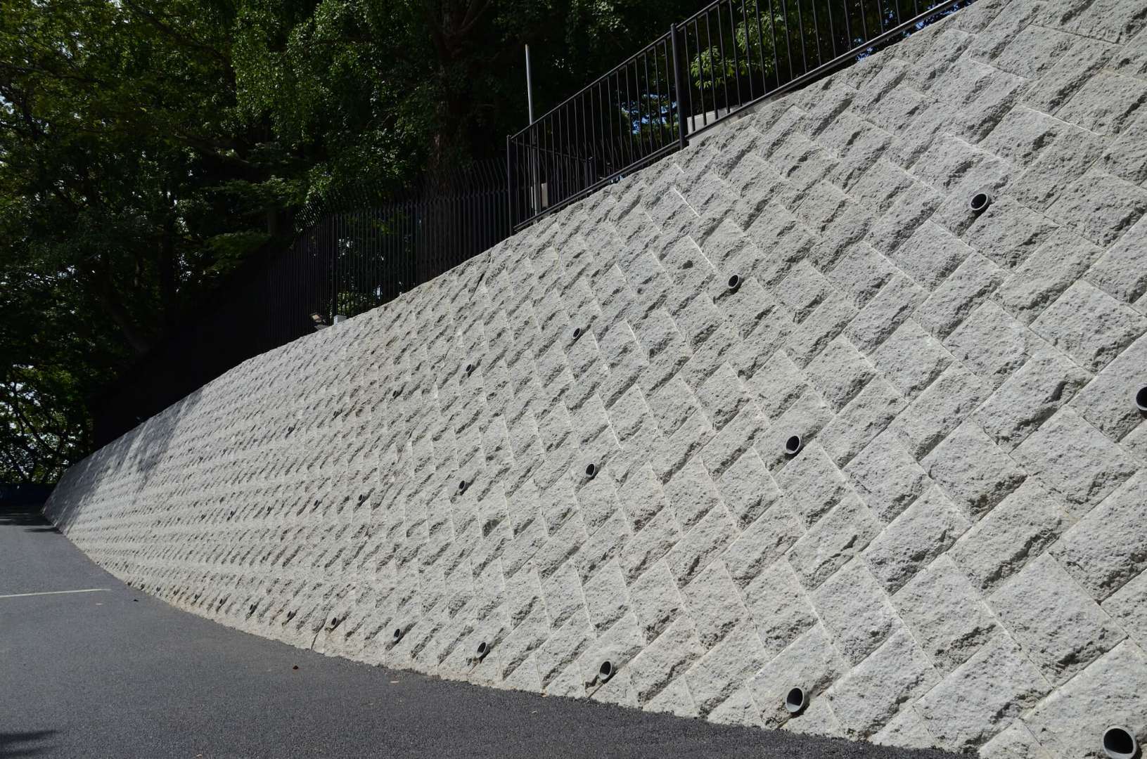 間知石積みは、日本工業規格(JIS)でも規定されている、前面が四角形で奥行きが角錐状に尖った加工石材です。大きさが均一で積み上げやすいため、土留め工事において最も一般的で信頼性の高い工法とされています。練積みで施工されることが多く、斜面の保護や道路沿いの擁壁など、確実な強度が求められる場所でその真価を発揮します。整った仕上がりになるため、公共事業から一般住宅まで幅広く利用されています。