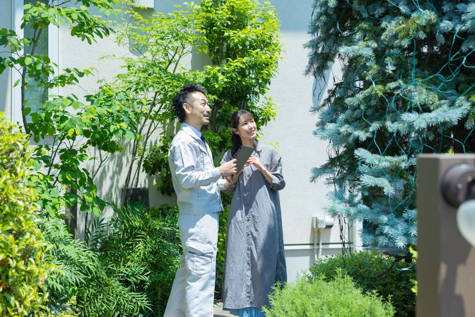 まずは電話やメールフォームから相談します。「庭の木が伸びすぎたので見てほしい」「雑草対策をしたい」など、ざっくりとした相談で構いません。その後、実際に現地を見てもらい(現地調査)、正式な見積もりを出してもらいます。業者によって、現地調査と見積もりが無料の場合もあります。