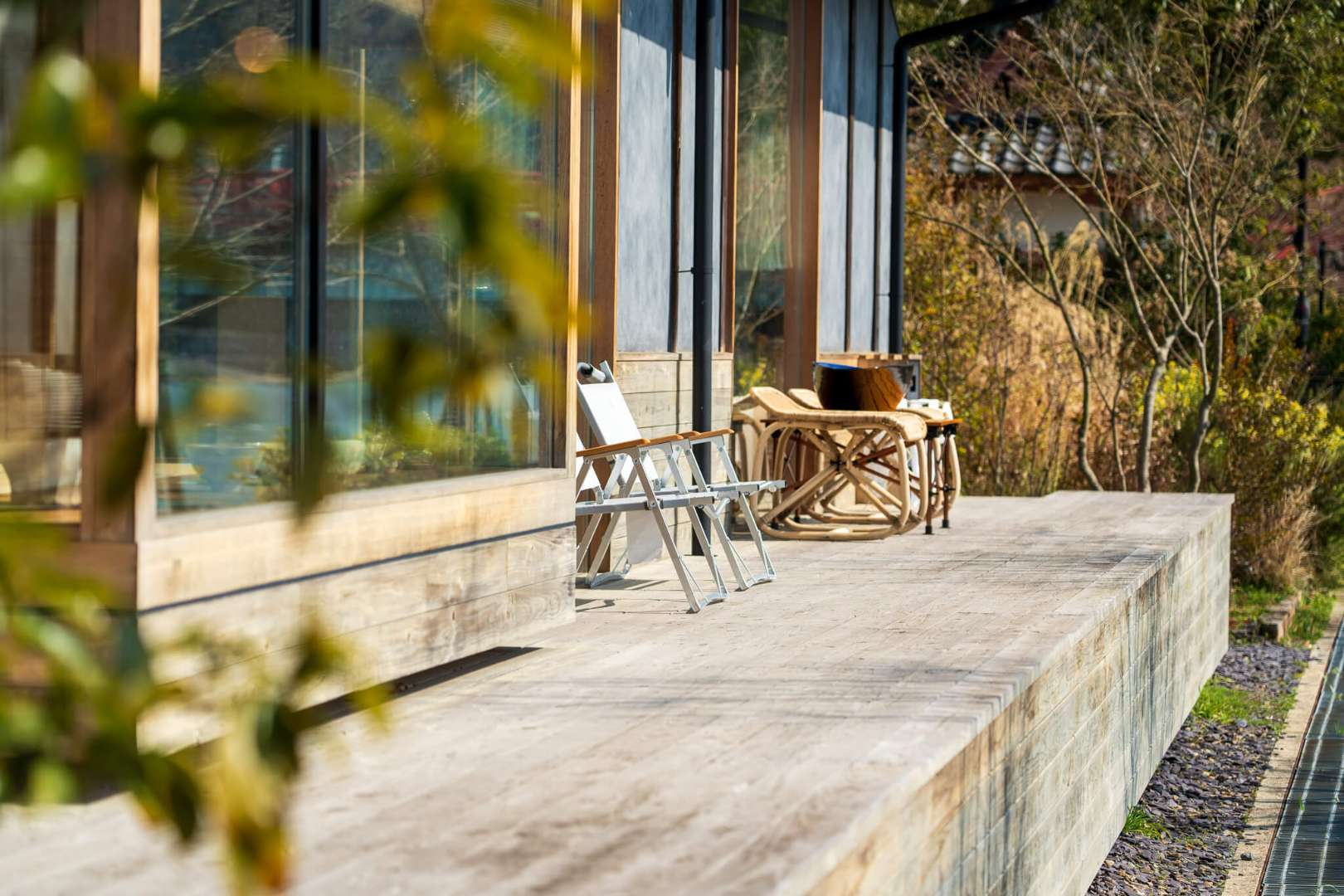 雑草対策を兼ねて、リビングの掃き出し窓から続く場所にウッドデッキを設置してみてはいかがでしょうか。この際、天然木ではなく、樹脂と木粉を混ぜた「人工木(樹脂木)」を選ぶのがポイントです。腐食やシロアリの心配がなく、定期的な塗装も不要です。室内と庭がフラットに繋がることで、庭に出る心理的ハードルが下がります。天気の良い日に日向ぼっこをしたり、お茶を飲んだり、布団を干したりと、庭が「第2のリビング」として活用されるようになります。