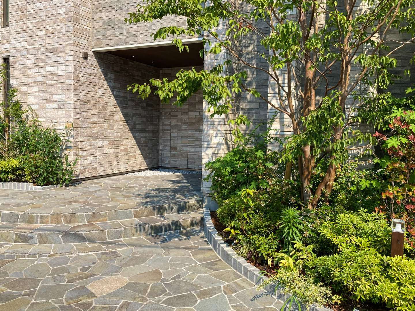 そこでおすすめしたいのが、造園のプロならではの「今あるものを活かす(再利用する)」というアプローチです。これが、費用を大幅に削減しつつ、ご家族の想いを受け継ぐ最大の秘訣となります。例えば、大きな庭石はそのまま処分するのではなく、配置を変えて花壇を囲う縁取り(土留め)として再利用したり、地面に埋め込んでアプローチ(通路)の舗装材として活かしたりします。石の置き方や用途を変えるだけで、見違えるようにモダンな印象へと生まれ変わります。また、たくさんある庭木をすべて伐採するのではなく、特に大切にしていた木や、見栄えの良い木をシンボルツリーとして1〜2本だけ残すのも素晴らしい方法です。このように活かせるものは活かすことで、高額な処分費用をカットできるだけでなく、ご両親との思い出を新しいお庭に自然な形で馴染ませることができます。